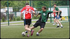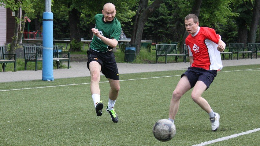 Na początku drugiej połowy kilka minut wstrząsnęło jednak defensywą zielonych. Czerwoni w pięć minut odskoczyli na trzy oczka, na co zieloni odpowiedzieli po chwili trafieniem Kucharza – ku zaskoczeniu wszystkich zawodnik zdobył gola piętą. Grający w osłabieniu liczebnym zieloni nacierali dalej i gdy zdobyli bramki dające im realną szansę na wyrównanie, piękną główką w okienko popisał się Nacho, a po chwili jeszcze ładniejszego gola zdobył Usul, który wykorzystał fantastyczne podanie Mańka i przelobował łepetyną bramkarza rywali. Zieloni wciąż byli w grze, a do walki hasłem „siadamy!” zagrzewał ich Grzesiu. Jego koledzy opacznie jednak zrozumieli te słowa i dosłownie „siedli” w defensywie, pozwalając czerwonym na dołożenie kilku kolejnych bramek i bezapelacyjne rozstrzygnięcie meczu na swoją korzyść.