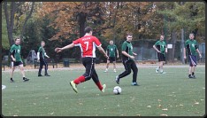 Początek meczu należał do czerwonych, którzy strzelili dwie bramki w odstępie dwóch minut, a po chwili mieli jeszcze szansę na trzecią – sytuację sam na sam zmarnował jednak Kuba, którego strzał obronił Hołek. Zieloni na swojego gola musieli poczekać ponad kwadrans, bo po większości ich strzałów piłka szybowała nie tylko nad poprzeczką bramki rywali, ale i nad siatką grodzącą boisko A od boiska B. Najlepiej celownik ustawił w końcu Sosna, dzięki któremu na przerwę obie drużyny schodziły remisując. I był to wynik sprawiedliwy.