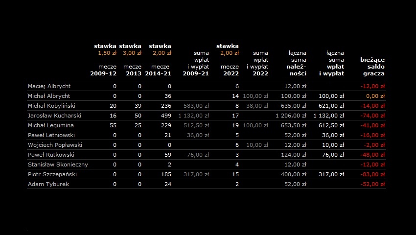 | 13 | : | 6 | 84' | Jarosław Kucharski (po podaniu Michała Albrychta) |
